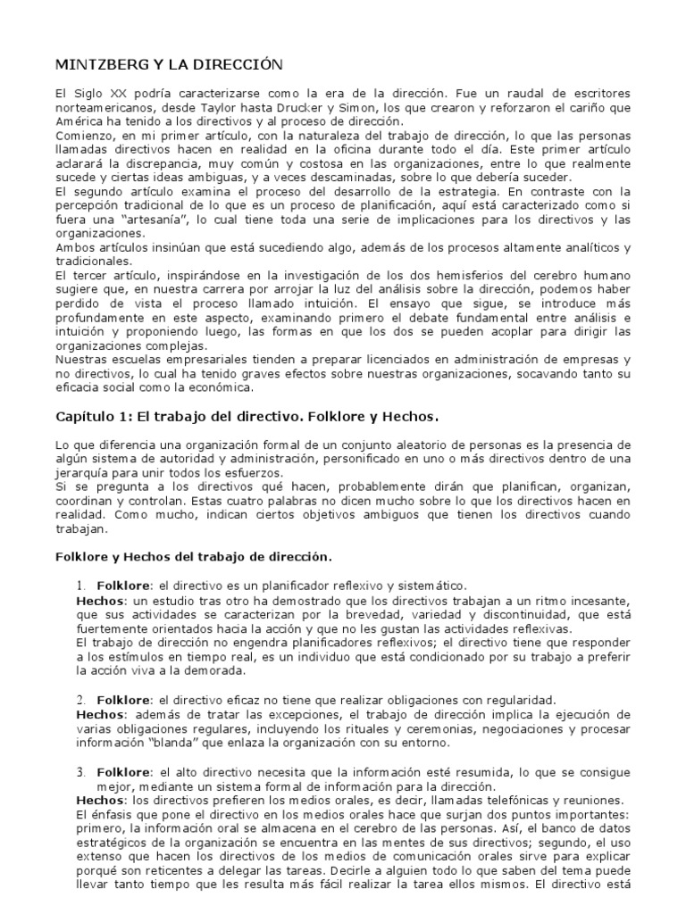 Algunos de los aportes más influyentes de henry mintzberg surgen a partir de su primer trabajo "the rise and fall of strategic planning", en el cual plantea . Perspectiva evolutiva", que se desarrolla como parte del proceso de tesis . El proceso estratégico y la administración estratégica: If you are author or own the copyright of this book, please report to us by. En la primera parte de el proceso estratégico (1993), mintzberg define la estrategia, al estratega y .